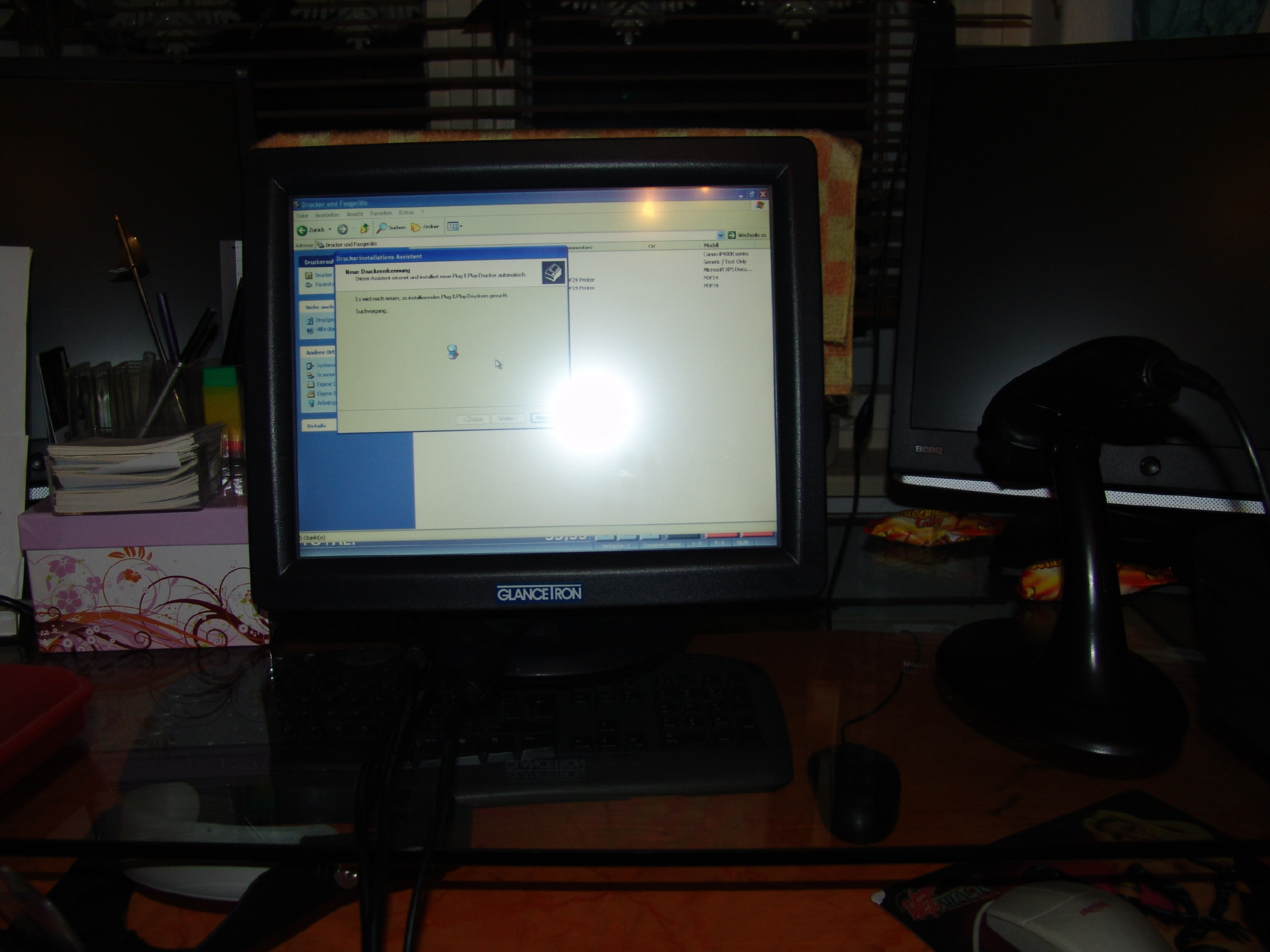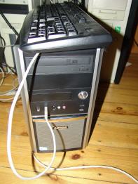 PC mit Monitor Tastatur und Maus Windows XP Pro.